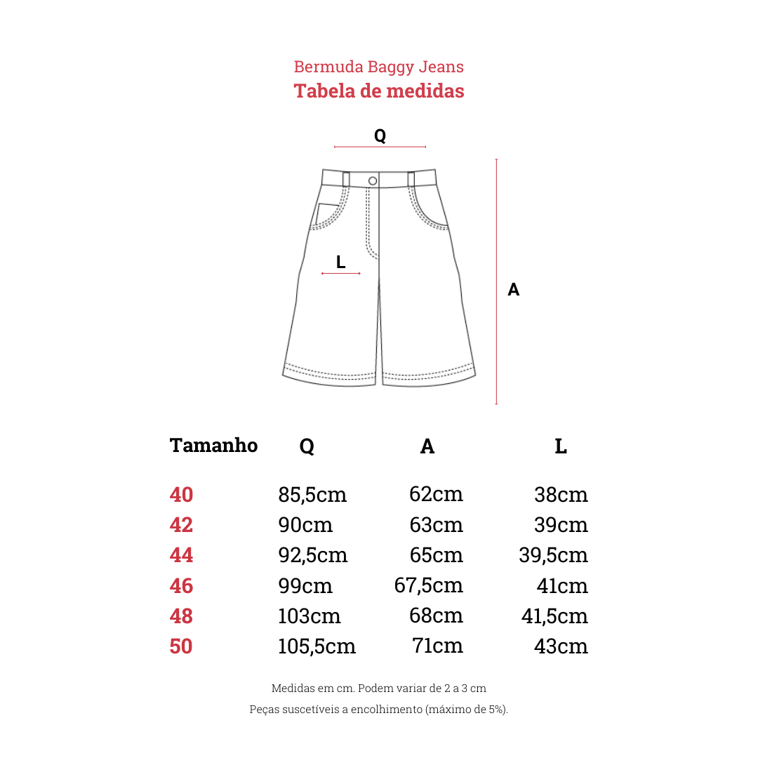 Guia de Medidas - Bermuda Baggy Jeans